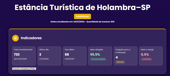 O Instituto de Previdência Municipal de Holambra (IPMH) divulgou o resultado final do Censo Previdenciário 2025, que obteve uma adesão histórica de 99,50% entre os servidores ativos da Prefeitura Municipal e da Câmara. O recadastramento foi concluído com 733 servidores regularizados, de um total de 737.